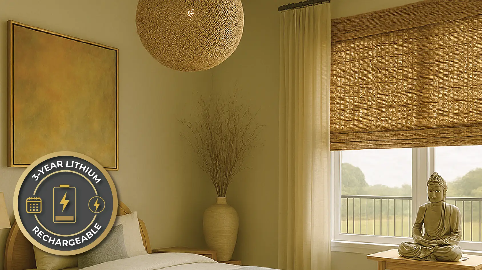 - Niño Woven Wood motorized shades come equipped with a USB-C rechargeable lithium battery.